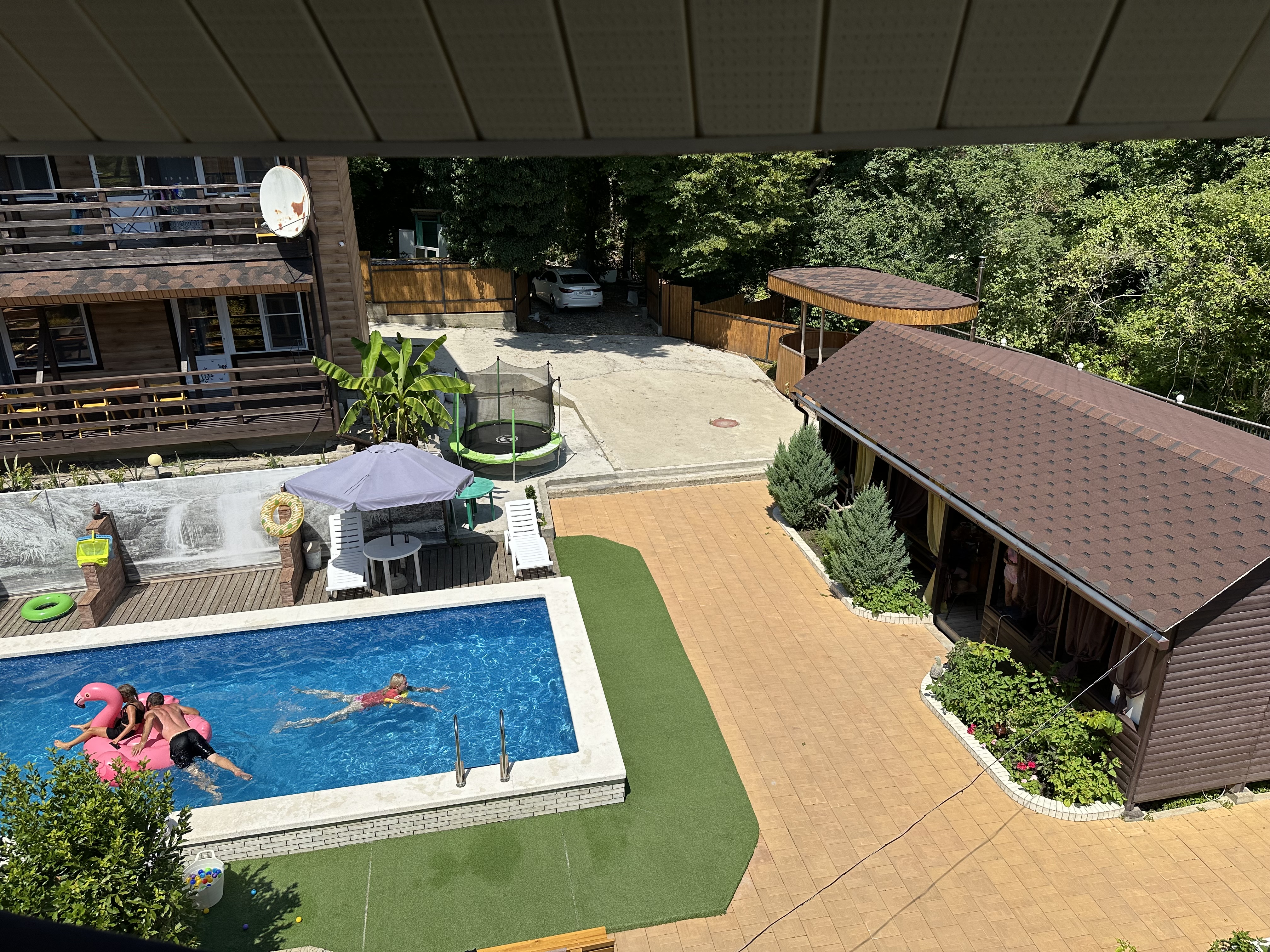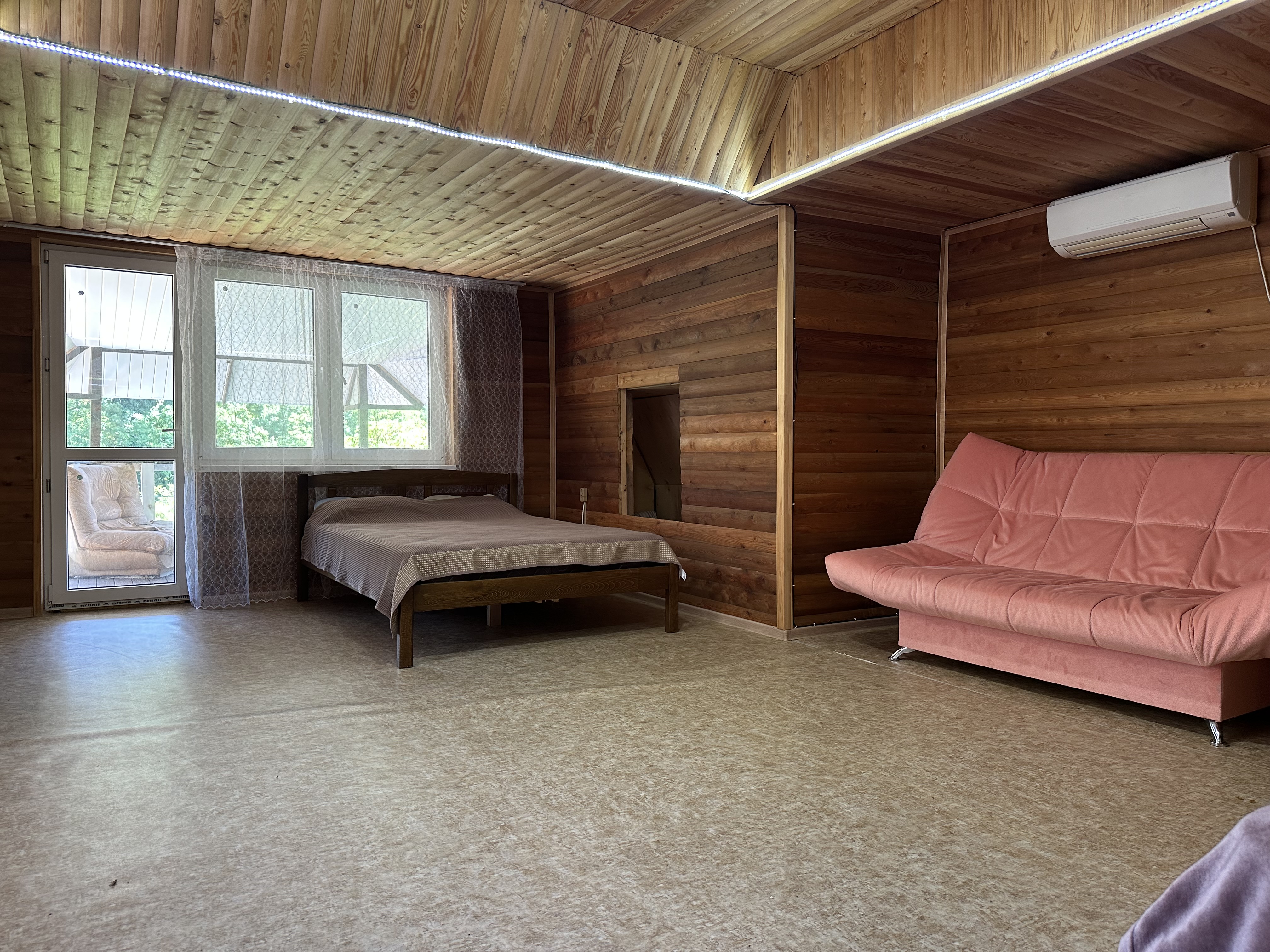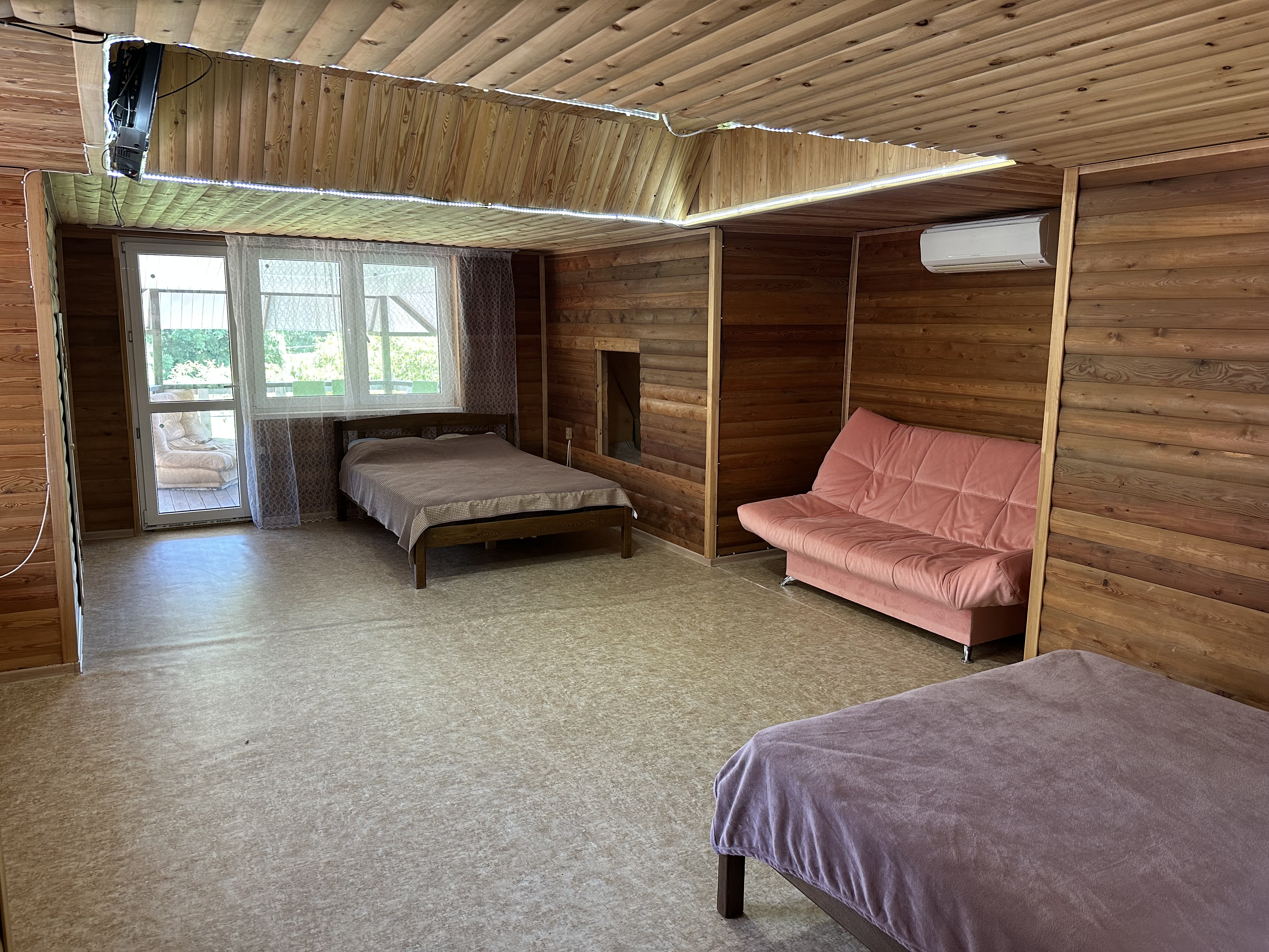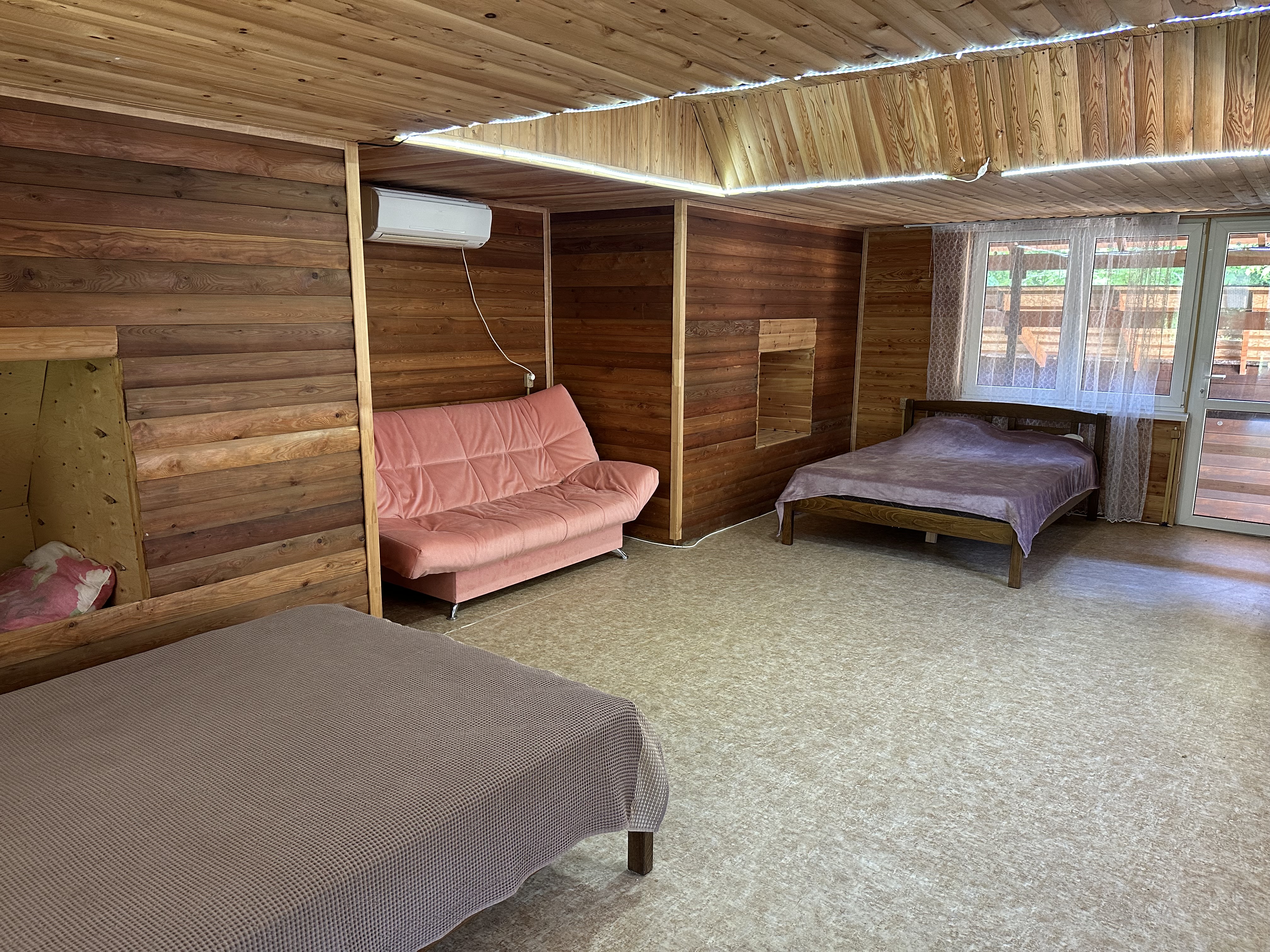 Номер с дополнительными местами, отлично подходит для отдыха большой компанией. Расположенный на 3-м этаже, этот уютный 40-метровый номер станет идеальным выбором для компании до 6 человек, желающих провести время в гармонии с природой. Ваш комфорт: 🛏 Две двуспальные кровати и раскладной диван на 2 места. ❄ Кондиционер для создания приятного микроклимата. 📺 Телевизор для семейных киновечеров. ♨ Чайник для душевных чаепитий. 🧺 Сушка для белья и практичная зона хранения вещей. Важно: 🚿 Общий санузел на 1-м этаже. 🍳 Просторная общая кухня в большой беседке (полный набор посуды и техники). Особенная атмосфера: 🌄 Панорамный балкон с уютной зоной отдыха – наслаждайтесь чарующими видами на базу отдыха и горные пейзажи. Идеально для тех, кто ищет: • бюджетный вариант для большой компании • просторное размещение (до 6 чел) • единение с природой Отличный выбор для активного отдыха с друзьями или семьей!